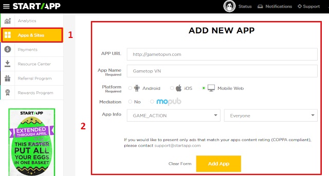 + Đăng ký Startapp tại đây : www.startapp.com