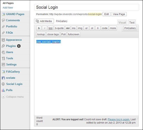 Để áp dụng Social Login vào một trang hoặc bài viết bất kỳ, chỉ cần copy shortcode [oasociallogin] và paste vào nơi mà bạn muốn plugin xuất hiện.