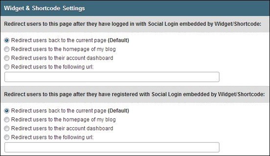 Mục này cho phép bạn kích hoạt/ vô hiệu hóa biểu mẫu đăng nhập bằng mạng xã hội trong trang đăng nhập mặc định của WordPress và chuyển hướng sau khi đăng nhập với Social Login.
